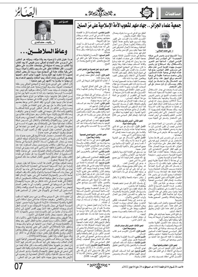 امرأة فرعون.. نموذج للتفاؤل وقدوة في الصبر 2022-06-16 اقرأ المزيد معالم التخطيط العسكري في دولة أبي بكر الصديق رضي الله عنه 2022-06-14 اقرأ المزيد الدعوة النبوية.. رسالة عالمية أساسها الخير والعدل 2022-06-11 اقرأ المزيد قبسات من سير أولي العزم من الرُّسل (9) 2022-06-10 اقرأ المزيد الدعوة النبوية.. رسالة عالمية أساسها الخير والعدل 2022-06-10 اقرأ المزيد معالم التخطيط العسكري في دولة أبي بكر الصديق رضي الله عنه 2022-06-07 اقرأ المزيد (الوسطية منهج قرآني أصيل) وسطية القرآن الكريم في العبادة (1) 2022-06-06 اقرأ المزيد (الوسطية منهج قرآني أصيل) – وسطية القرآن الكريم في العبادة (2) 2022-06-06 اقرأ المزيد الوسطية منهج قرآني أصيل.. وسطية القرآن الكريم في العبادة (1) 2022-06-05 اقرأ المزيد العلاقة بين محمد الفاتح وشيخه آق شمس الدين وأثرها في تكوين شخصيته 2022-06-03 اقرأ المزيد جمعية علماء الجزائر.. جهاد ملهِم لشعوب الأمة الإسلامية على مَرّ السنين 2022-06-03 اقرأ المزيد معالم السياسة الخارجية في دولة أبي بكر الصديق رضي الله عنه 2022-06-03 اقرأ المزيد شجرة النبوة الإبراهيمية.. ابتداءً من إبراهيم وانتهاء بمحمد (عليهم الصلاة والسلام) 2022-06-02 اقرأ المزيد لماذا وُزعت قصة إبراهيم عليه السلام في أكثر من سورة في القرآن؟ 2022-06-02 اقرأ المزيد قراءة في نمط الحكم عند الأمير عبد القادر 2022-05-31 اقرأ المزيد